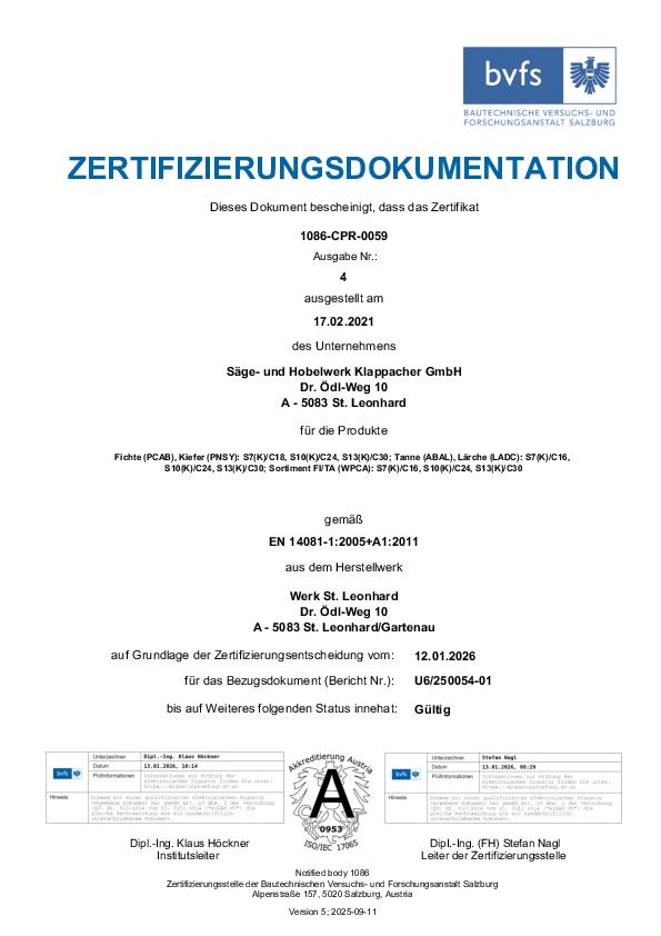Das Sägewerk Klappacher verfügt über folgende Zertifkate, welche wir unseren Kunden gerne zum Download zur Verfügung stellen: